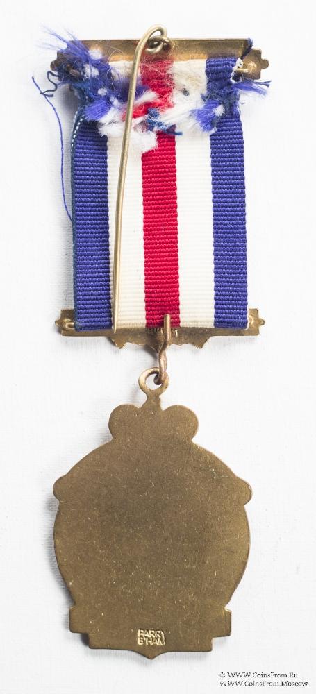 Верхняя колодка с лиственным орнаментом, буквами EIIR и датой 1952-1977. Игла для ношения. Нижняя колодка с лиственным орнаментом из 9 листьев с каждой стороны и бантом по центру.