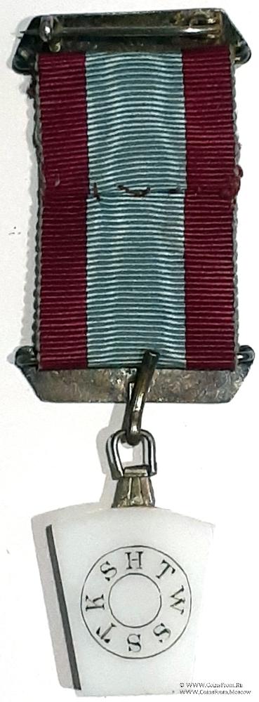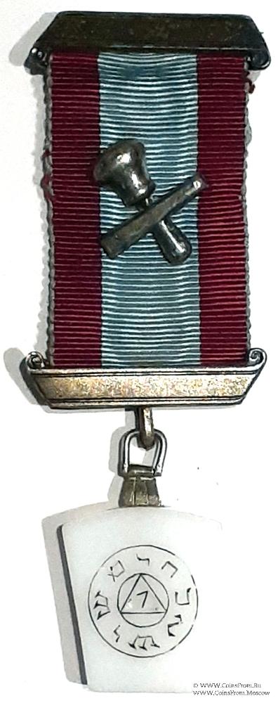 ЛЕНТА: голубая с малиновыми полосами по бокам. Ширина 25 мм. Такое оформление применяется для рядовых членов Ложи.