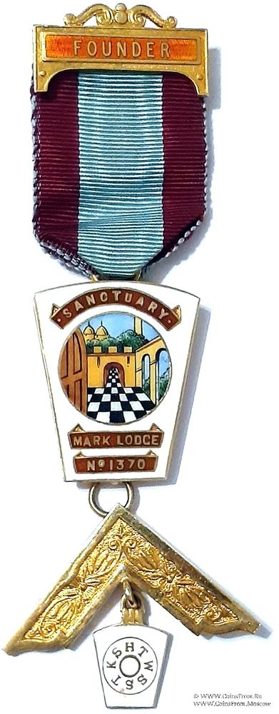 РЕВЕРС: верхняя часть знака клейма ЕР, лев, голова леопарда, р – 1970 г. Средняя часть – наугольник. Клейма: ЕР, лев, голова леопарда, q -1971 г. Гравировка: Presented to Wor. Bro. L.A. Coran PPG Reg. First Master 1970-1971. Нижняя часть подвеска - лев.