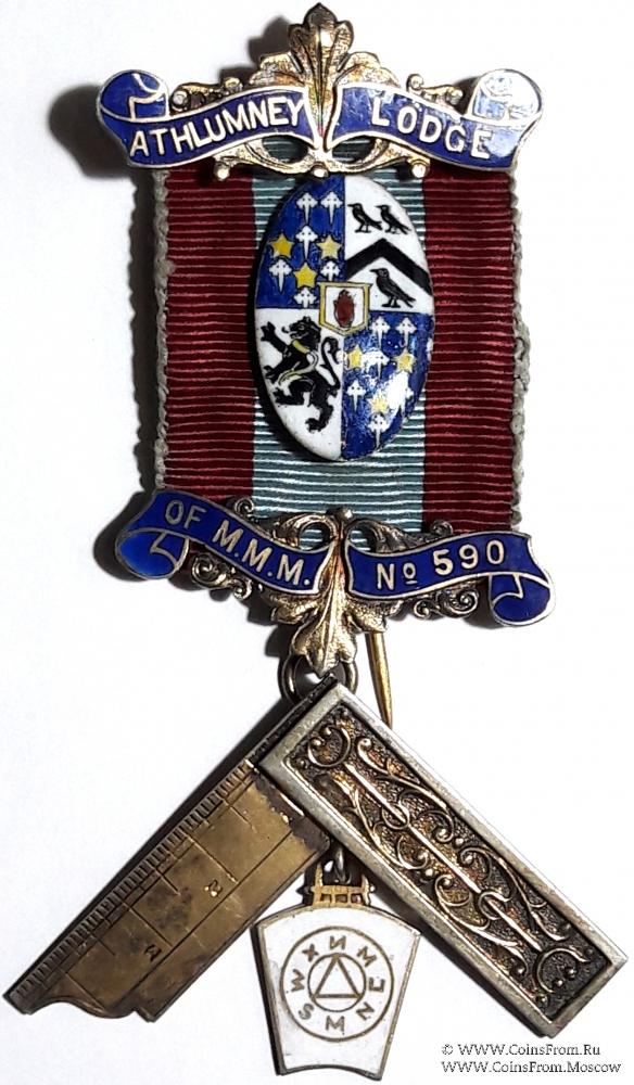 Колодки/медальон: Верхняя колодка в виде двух витых лент с наименованием Ложи, в центре ленты сверху и снизу орнамент. Нижняя колодка аналогична верхней с продолжением надписи и номером Ложи. В центре ленты медальон овальной формы, разделённый на четыре части с элементами гербов в каждой четверти. В центре шит с красной ладонью – символ Ольстера.