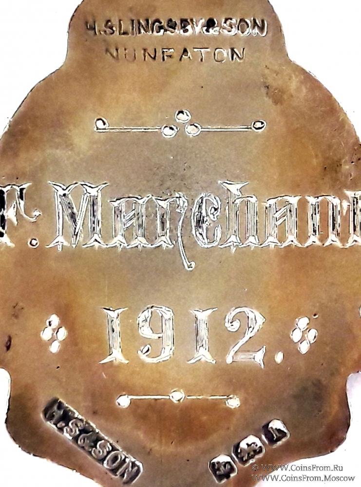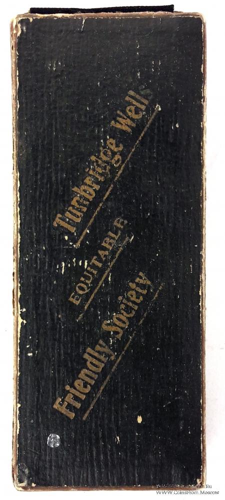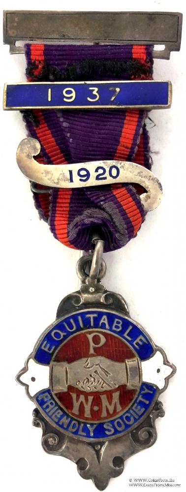 Знак круглой формы на стилизованной подставке. В кругу синей эмали надпись с названием Ордена EQUITABLE FRIENDLY SOCIETY - РАВНОПРАВНОЕ ДРУЖЕСКОЕ ОБЩЕСТВО. В центре на красном фоне рукопожатие с трилистниками по бокам. Буквы P.W.M. (Р.W.M. –Прошлому Досточтимому Мастеру). Гравировка на реверсе знака F. MARCHANT 1912.
