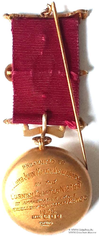 РЕВЕРС: гравировка: Presented to Ex.Comp. John Martin Kempthorne by the Cornish Chapter № 2369 in Ap-preciation of his Excellent Services as 14th M.E.Z. 1938 - Представлен Превосходный компаньон John Martin Kempthorne Капитул Cornish № 2369 в знак признательности за его превосходные заслуги в качестве 14-го Наилучшего Зоровавеля 1938 г. Клейма: T&Co. London, Toye&Co, London, лев, голова леопарда, C (1938)