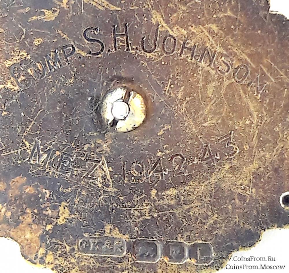 Гравировка на реверсе: E. COMP. S.H. JOHNSON M.E.Z. 1942-43. Знак вручён в 1946 г. за работу Наилучшим Зоровавелем в 1942-43 годах.