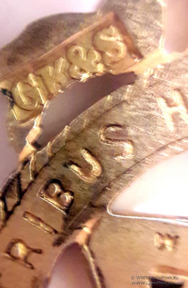 На аверсе знака у двух перекрещивающихся треугольников и во внешнем круге слова: «Если вы способны соединить эти предметы, то ваше знание является полным». Надпись на треугольниках: «Мы нашли это», «Поклонение богу», «Гражданин мира».