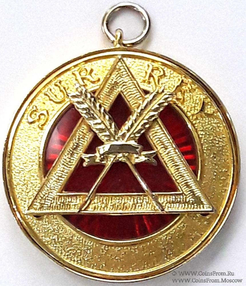Аверс: круглой формы, внутри сияющие лучи на красном фоне. Сверху накладной равносторонний треугольник с накладными перьями, перевитыми лентой - эмблемой должности секретаря. В верхней части по кругу наименование провинции SURREY.