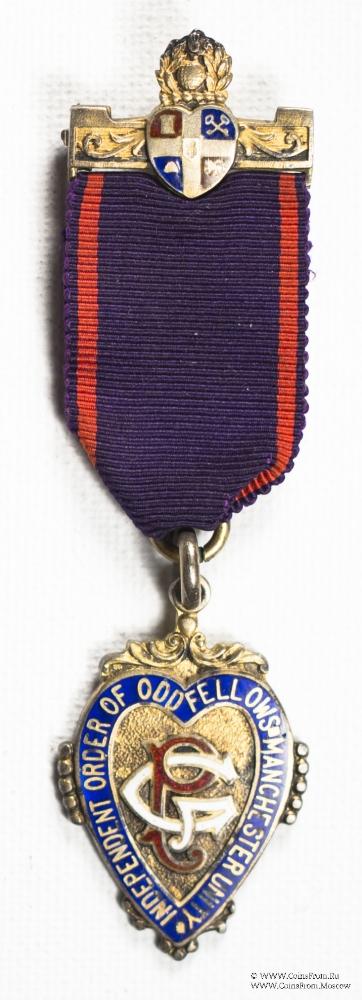 Знак INDEPENDENT ORDER OF ODDFELLOWS MANCHESTER UNITY – МАНЧЕСТЕРСКИЙ СОЮЗ НЕЗАВИСИМОГО ОРДЕНА ТАЙНОГО БРАТСТВА