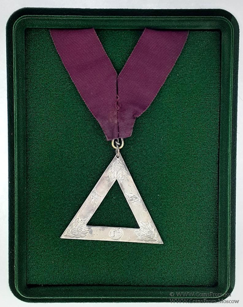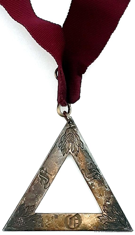 АВЕРС: в форме равностороннего треугольника. По углам изображение жёлудя в листьях. На сторонах символическая вязь из букв - FFO - Friendship / Fidelity/ Obedience - Дружба / Верность / Послушание.