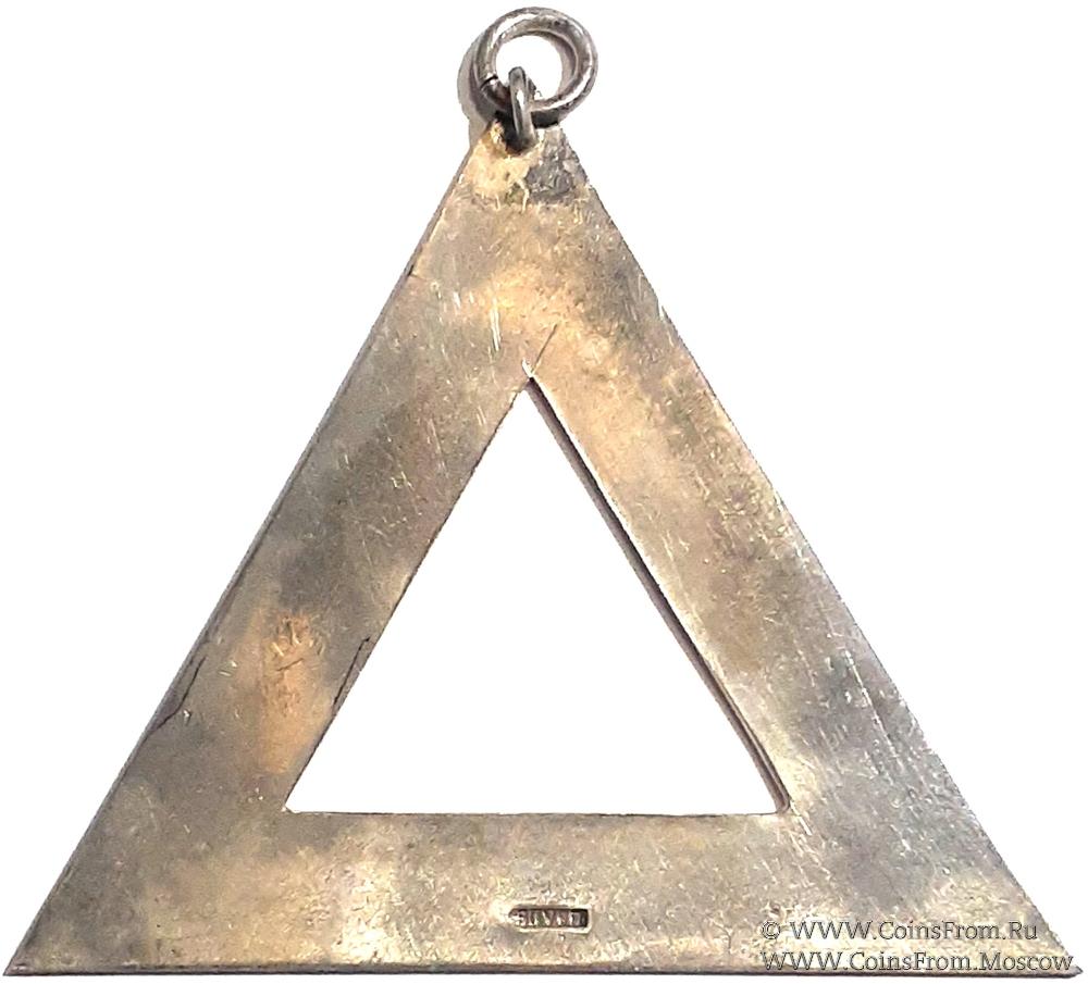 АВЕРС: в форме равностороннего треугольника. По углам изображение жёлудя в листьях. На сторонах символическая вязь из букв FFO - Friendship / Fidelity/ Obedience - Дружба / Верность / Послушание.