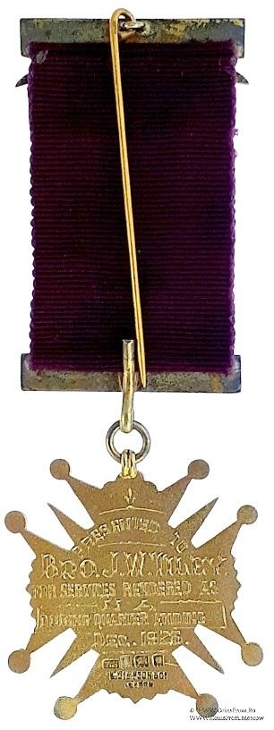 РЕВЕРС: клейма: L. Simpson&Co, London. LS. Лев, голова леопарда I (1926). Гравировка: Presented to Bro. J.W. Tiley for Services Rendered as NA during Quarter Ending Dec. 1926.