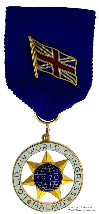 АВЕРС: двойной круг белой эмали с наименованием и номером конгресса – I.G.L.D. XIV World Congress. Malmo. В центре на семи конечной звезде изображение земного шара с датой 1970.