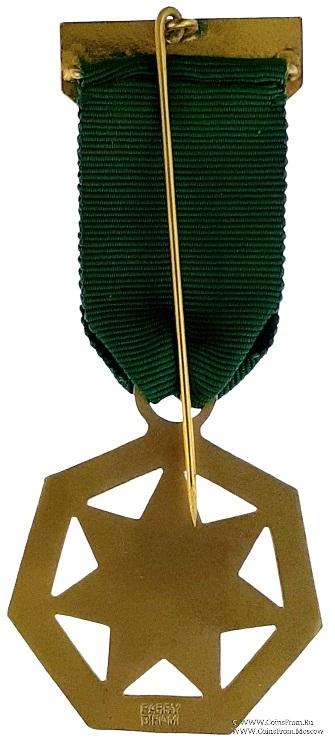 АВЕРС: в форме семиугольника голубой эмали с надписью на английском языке INTERNATIONAL GRAND LODGE OF DRUIDISM. BRAUNSCHWEIG WOLFENBUTTEL - Международная Великая Ложа Друидизма. Брауншвейг - Вольфенбюттель. В семиугольник вписана семи конечная звезда, в центре которой изображение глобуса с буквами U.P.C.