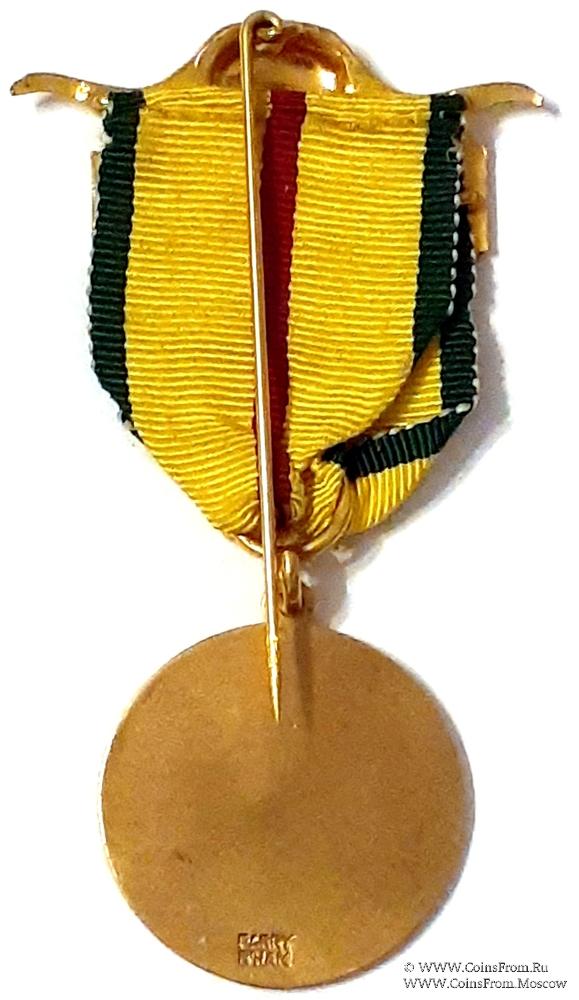 Колодки/медальон: верхняя колодка в виде рогов буйвола и иглой для носки с обратной стороны. На ленте медальон прямоугольной формы синей эмали с надписью: ISLE OF MAN CONVENTION 1973. RAOB GLE. (Конвенция 1973 г на острове МЭН). Внизу лента продета в кольцо знака.