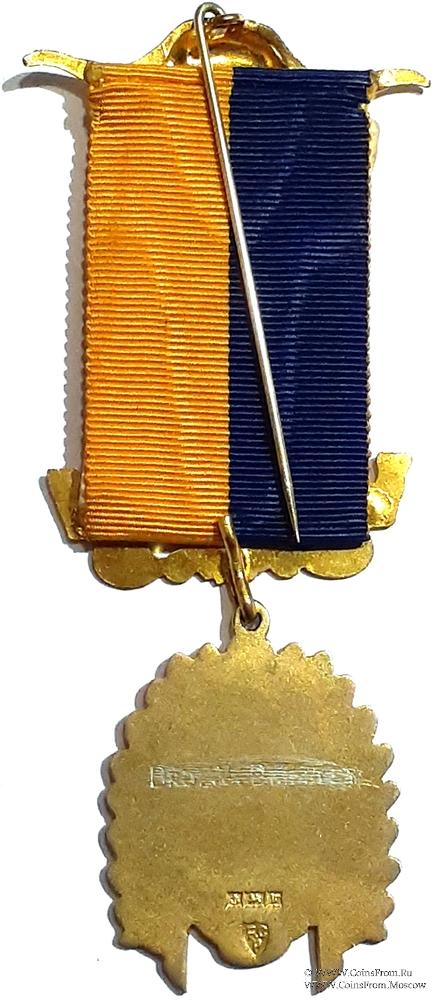Колодки/медальон: верхняя колодка в виде рогов буйвола с иглой с обратной стороны. Нижняя колодка в виде ленты на фоне орнамента с наименованием и номером Ложи Quebec Lodge № 9612. (Квебек – провинция Канады и одноимённый город, административный центр этой провинции).В центре ленты металлический медальон в виде вязи из букв аббревиатуры Ордена RAOB.