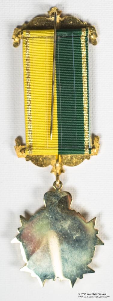 Лента жёлто-зелёная. В центре ленты медальон круглой формы с аббревиатурой Ордена RAOB и короной сверху.
