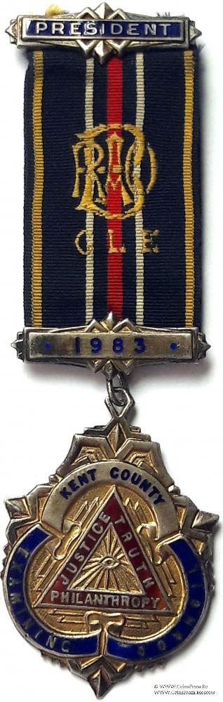 Аверс: в центре Лучезарная дельта, или Всевидящее око. Лучи ограниченны треугольником, в котором на красной эмали написан девиз: JUSTICE, TRUTH, PHILANTROPHY - справедливость, истина, человеколюбие. Треугольник обрамлён тремя дугами с надписями: EXAMINING COUNCIL KENT COUNTY – экспертный совет графства Кент.