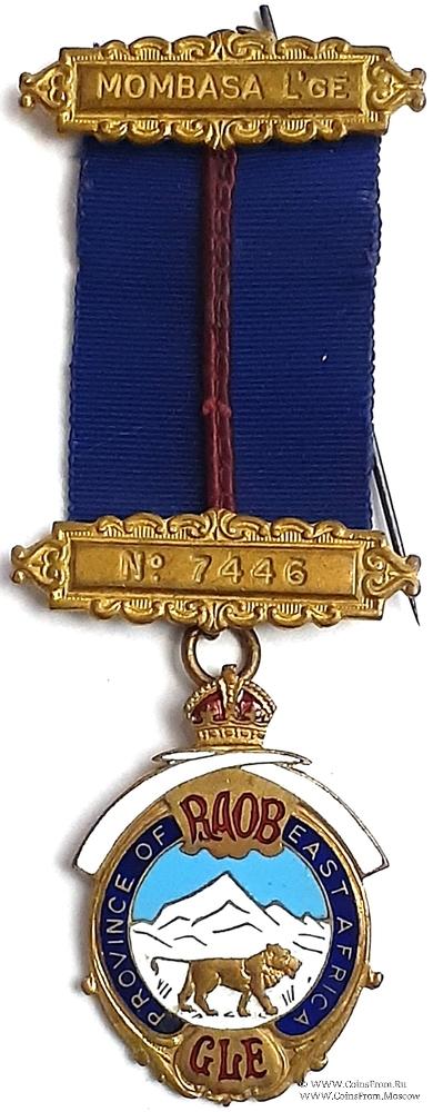 АВЕРС: круглой формы сверху увенчанный короной. По кругу наименование провинции - Province of East Africa (Восточная Африка) и аббревиатура Ордена - RAOB GLE. В центре изображение льва на фоне заснеженных гор. Верх знака украшен двумя заострёнными белыми полосами.