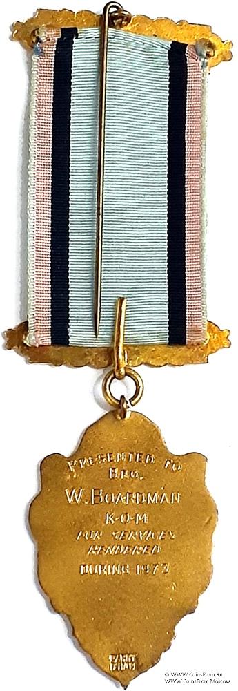 РЕВЕРС: клейма: PARRY B’HAM. Гравировка: Presented to Bro. W. Boardman K.O.M. for Services Ren-dered During 1973. Представлен брату W. Boardman Рыцарю Ордена за заслуги за услуги, оказанные в течение 1973 года.