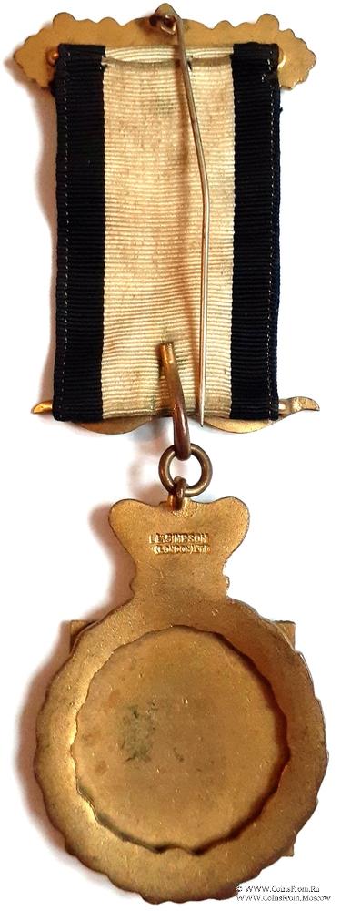 КОЛОДКИ/МЕДАЛЬОН: верхняя колодка в форме прямоугольника на фоне орнамента с буквами G.L.E. (Grand Lodge England – Великая Ложа Англии). Нижняя колодка в форме рогов буйвола.