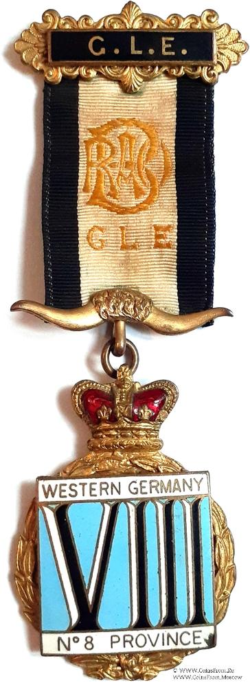 АВЕРС: накладной квадрат на фоне коронованного венка. На квадрате надписи: Western Germany № 8 Province. И большая «римская» цифра VIII.