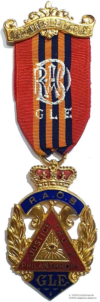 Лента знака красная с чёрно-жёлтыми полосами и вышивкой аббревиатуры Ордена RAOB GLE. Ширина – 32 мм.