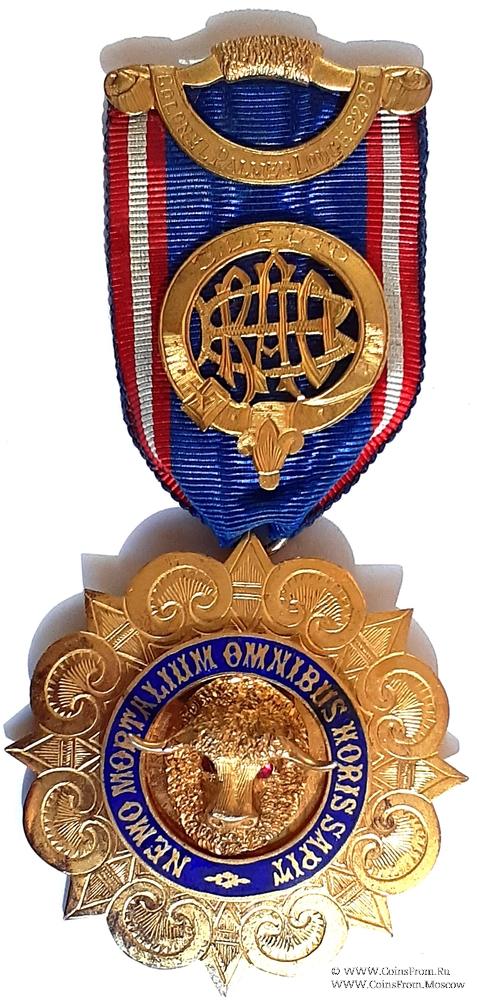 АВЕРС: в форме восьмиконечной звезды, каждый луч которой украшен гравировкой. Каждый кван-дрант украшен овалом с гравировкой. В центре накладной круг синей эмали с девизом Ордена Nemo Mortalium omnibus Horis Sapit. В круге объёмное изображение головы буйвола. В качестве глаз использованы камни красного цвета.