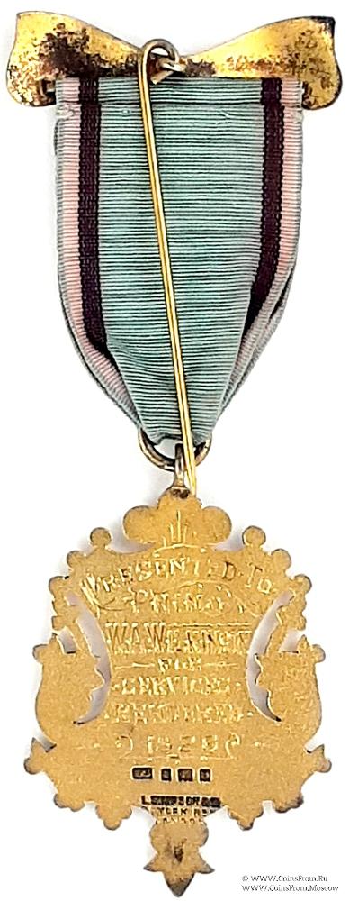РЕВЕРС: клейма: L.Simpson&Co 56 York R № London. LS, лев, голова леопарда, L (1926). Гравировка: Presented to Primo WAWilkinson for Services Rendered. 1926.
