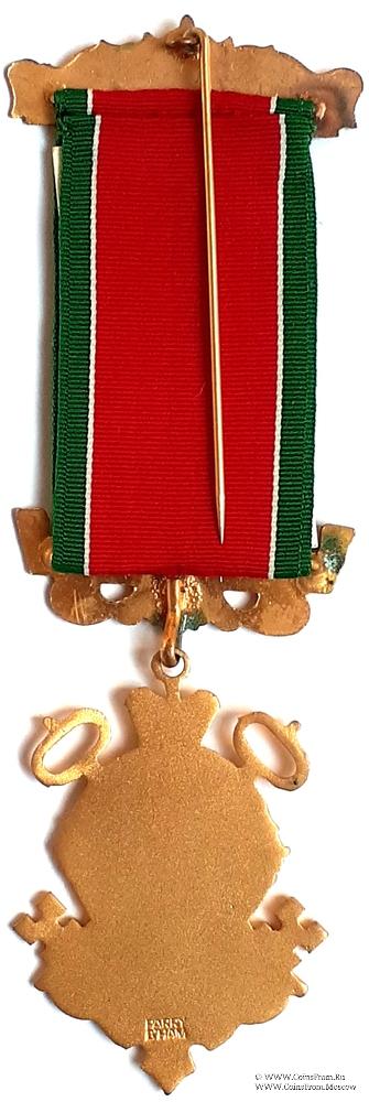 Лента: красная с бело-зелёными полосами по бокам. Ширина ленты 32 мм.
