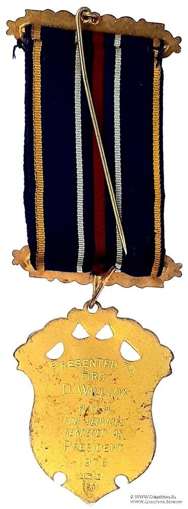 РЕВЕРС: гравировка: Presented to Bro.D.Willcox ROH for Services Rendered as President 1976. Клейма: FCP, якорь, лев, B (1976).
