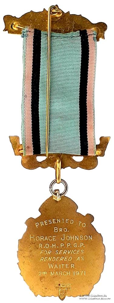 РЕВЕРС: гравировка: Presented to Bro. Horace Jonson ROH PPGP for Services Rendered as Waiter 2nd March 1971. Клейма: FC P, якорь, лев, v (1970).