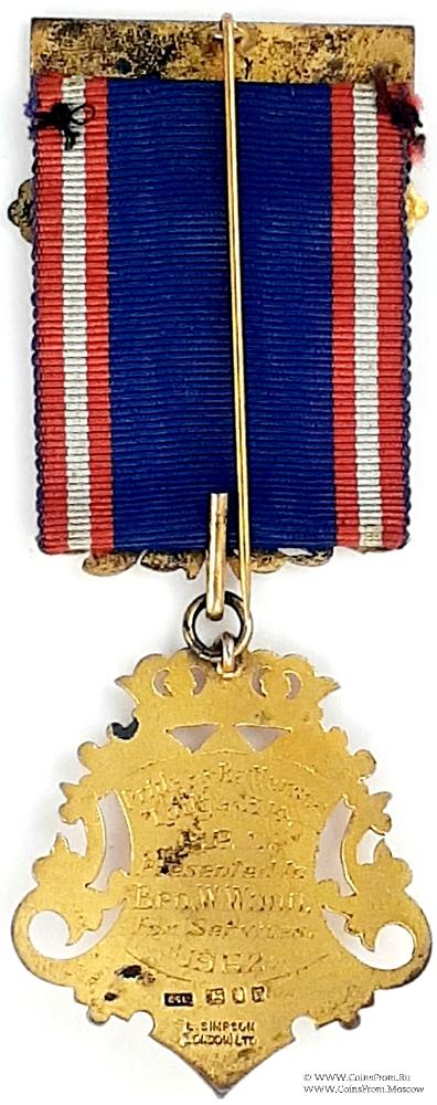 РЕВЕРС: клейма: LSLD , лев, голова леопарда, q (1962). Гравировка: Pride of Battersea Lodge 314 GPC Presented in Bro. W.Wood, for Services, 1962.