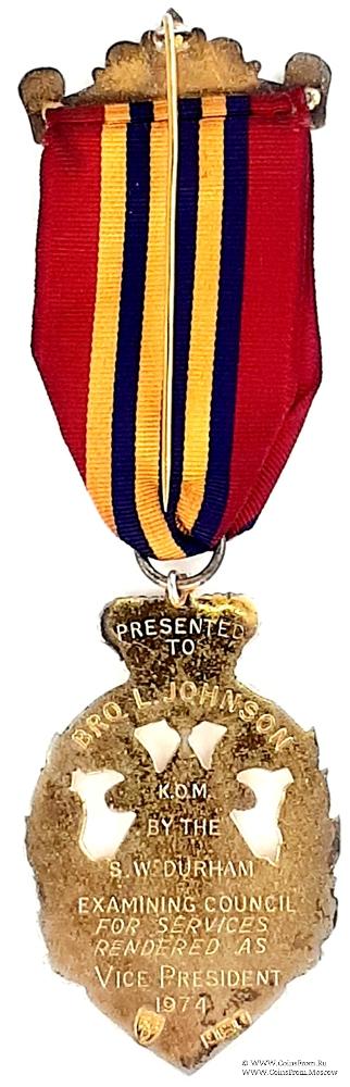РЕВЕРС: клейма: FCP. Якорь, лев, A (1975). Гравировка: Presented to Bro. L. Johnson KOM by the S.W. Durham Examining Council for Services Rendered as Vice President 1974.