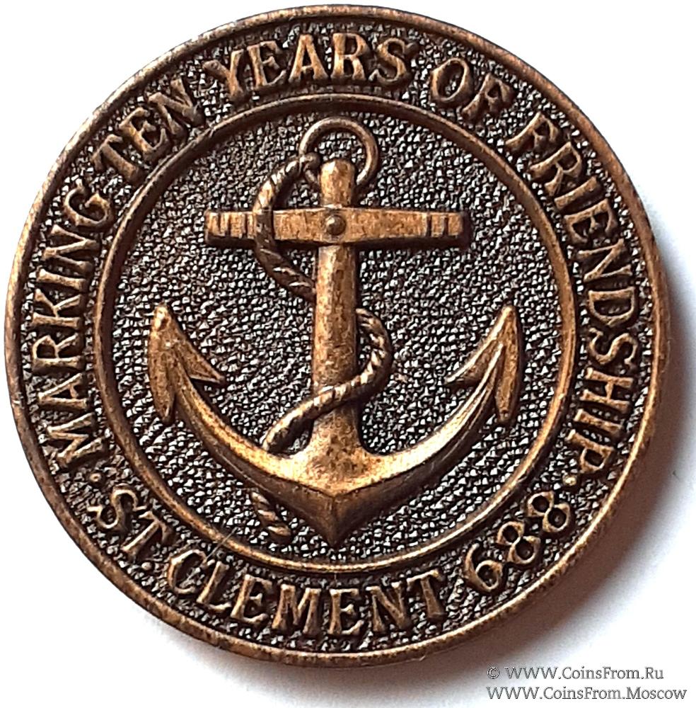 Реверс: в центре изображение якоря. По окружности в двойном круге надпись: Marking ten years of friendship St. Clement 688.