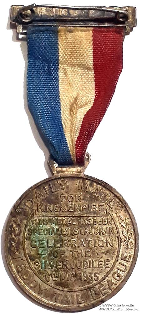 РЕВЕРС: по кругу надпись: Daily Mail Teddy Tail League. В центре надпись: For King & Empire (Для Короля и Империи). Ниже текст: This Medal Has Been Specially Struck in CELEBRATION of the Silver Jubilee 6 May 1935 - Эта медаль была специально отчеканена в честь серебряного юбилея 6 мая 1935 года.