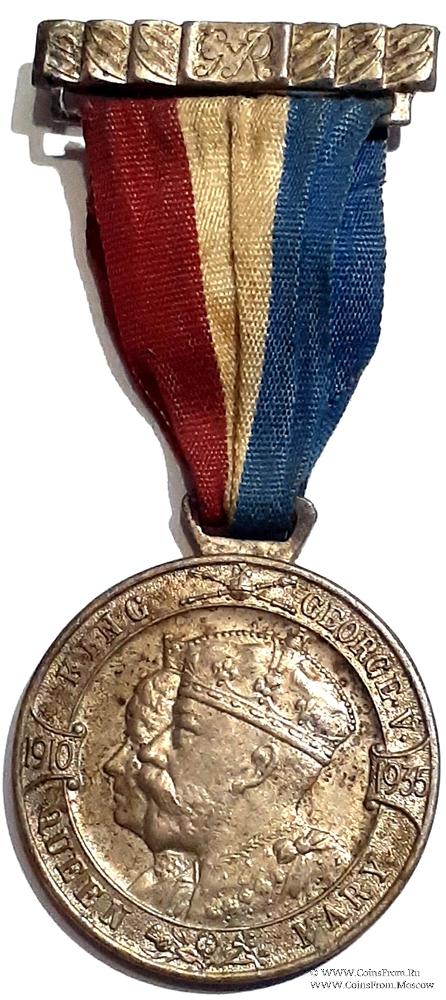 АВЕРС: в центре профильное изображение короля Георга V и королевы Марии, повёрнутое влево. По кругу надпись: 1910 King George V 1935 Queen Mary (1910 Король Георг V 1935 Королева Мария). В нижней части изображение розы, чертополоха и трилистника – символы Англии, Шотландии и Ирландии. В верхней части изображение «Державы», и скипетров.