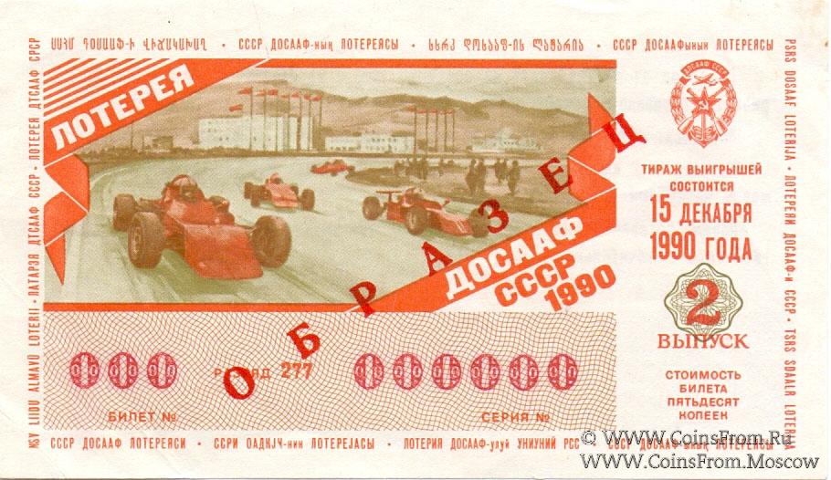 Билет. Выпуск 2. Типографская надпечатка красного цвета по диагонали "ОБРАЗЕЦ". Лотерея.