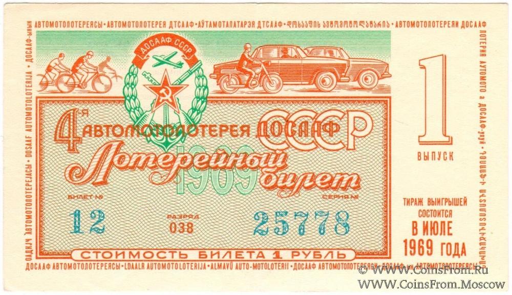 Лотерейный билет. Выпуск 1. 4-я Автомотолотерея.