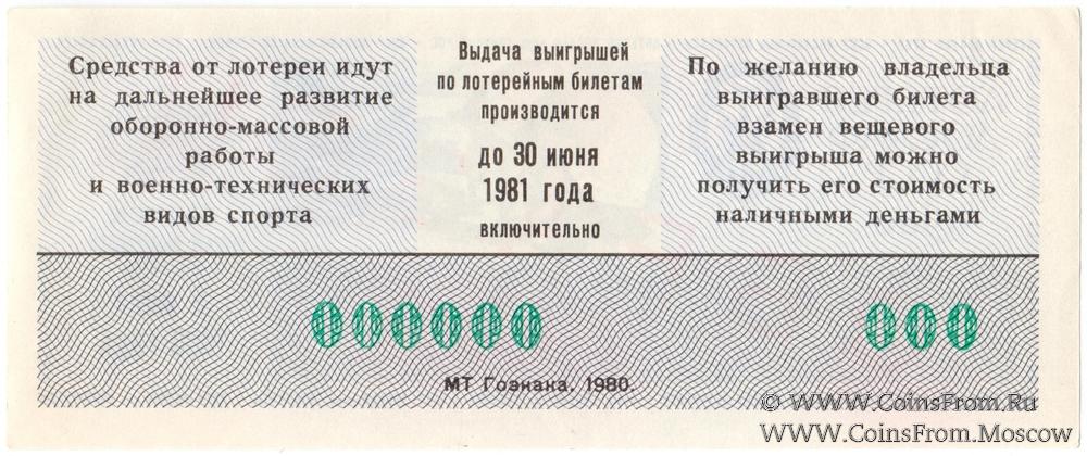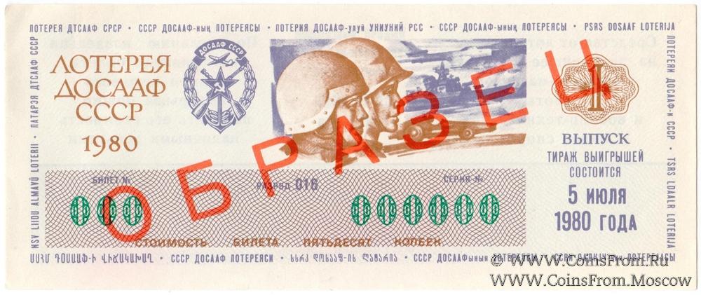 Билет. Выпуск 1. Типографская надпечатка красного цвета по диагонали "ОБРАЗЕЦ". Лотерея.