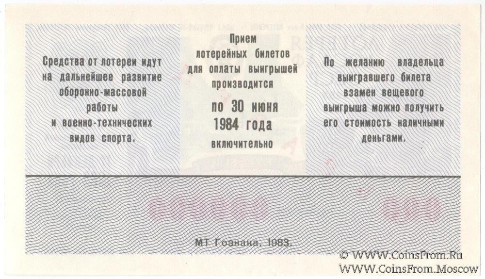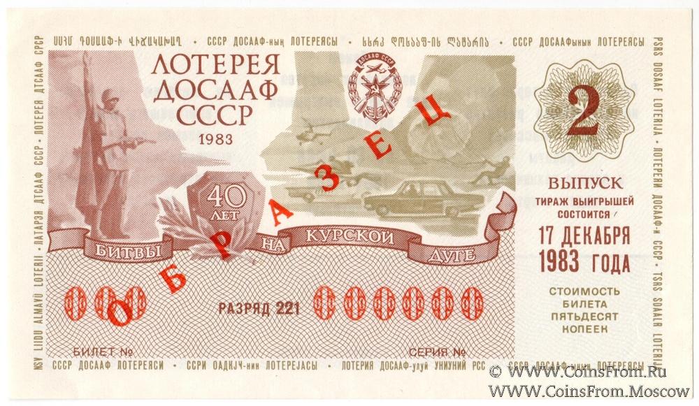 Билет. Выпуск 2. Типографская надпечатка красного цвета по диагонали "ОБРАЗЕЦ". Лотерея.