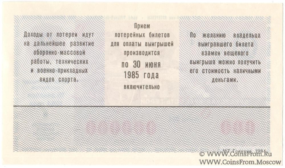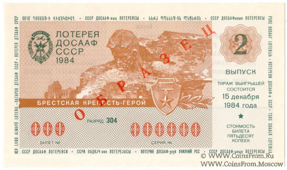 Билет. Выпуск 2. Типографская надпечатка красного цвета по диагонали "ОБРАЗЕЦ". Лотерея.