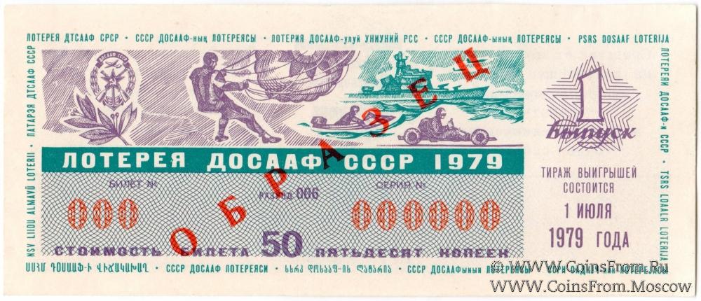 Билет. Выпуск 1. Типографская надпечатка красного цвета по диагонали "ОБРАЗЕЦ". Лотерея.