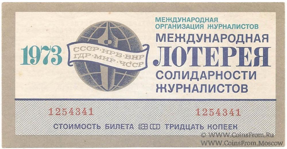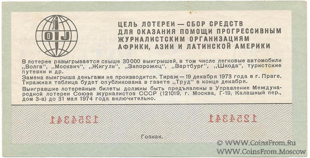 Билет. Водяной знак. Тираж в г. Праге (ЧССР). Международная лотерея солидарности журналистов.