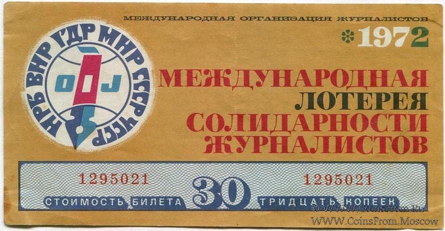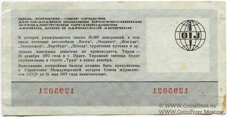 Билет. Водяной знак. Тираж в г. Праге (ЧССР). Международная лотерея солидарности журналистов.