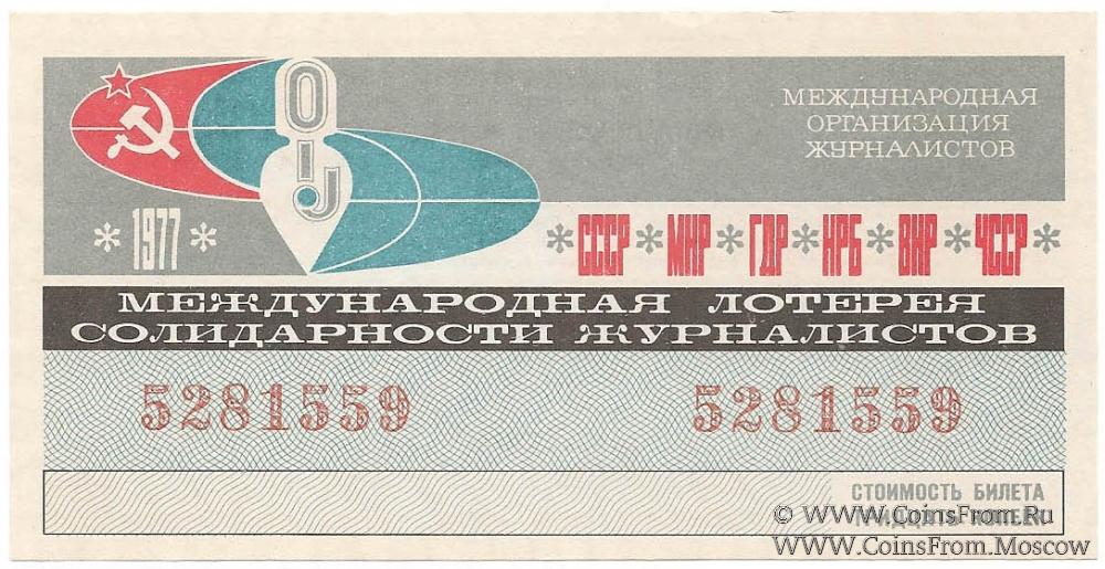 Билет. Водяной знак. Тираж в г. Праге (ЧССР). Международная лотерея солидарности журналистов.