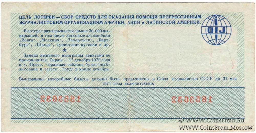 Билет. Международная вещевая лотерея солидарности журналистов.
