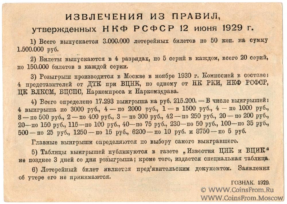 Лотерейные билеты РСФСР и СССР 1922-1991 гг. Всероссийский выпуск.