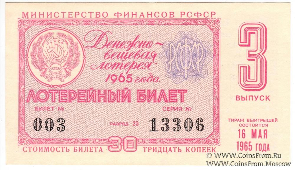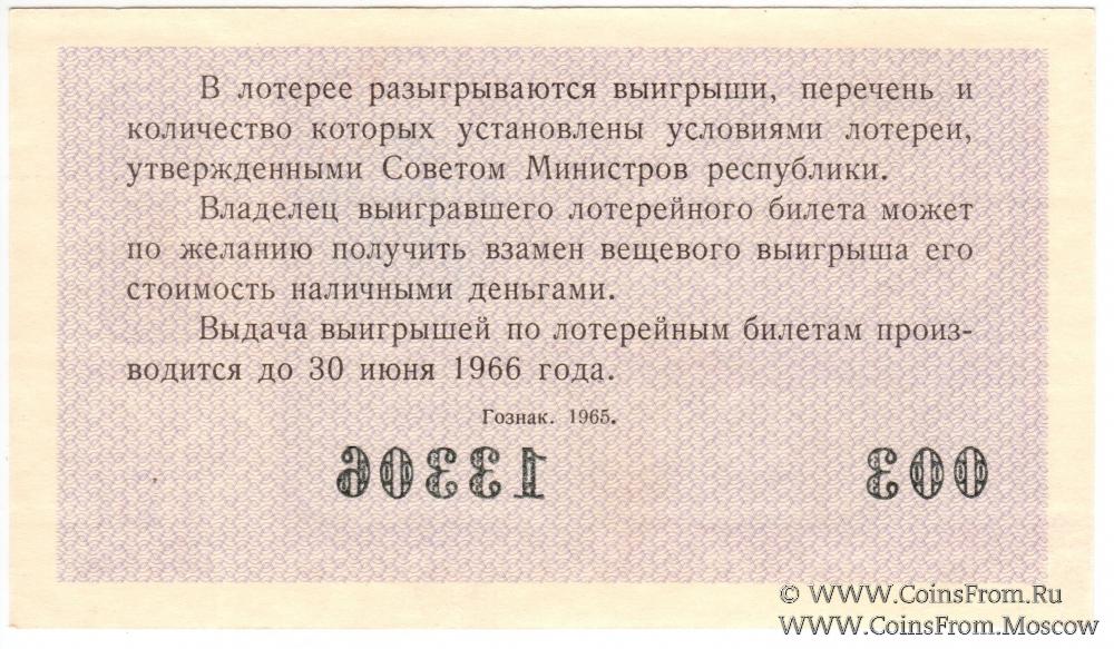 Лотерейный билет. Выпуск 3. Денежно-вещевая лотерея 1965 г.