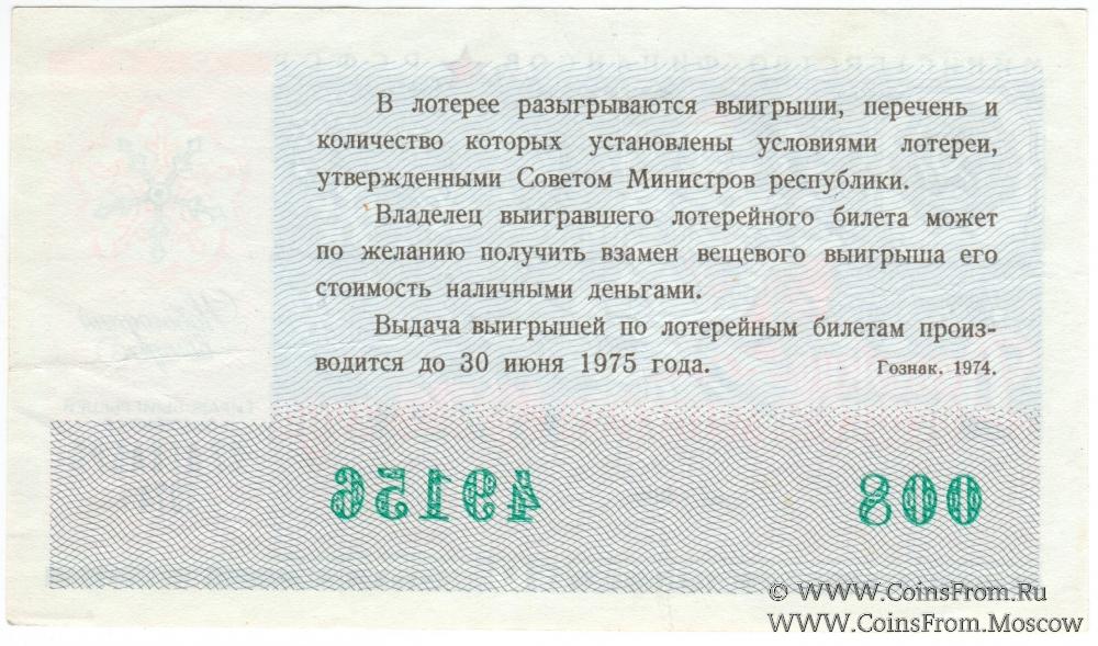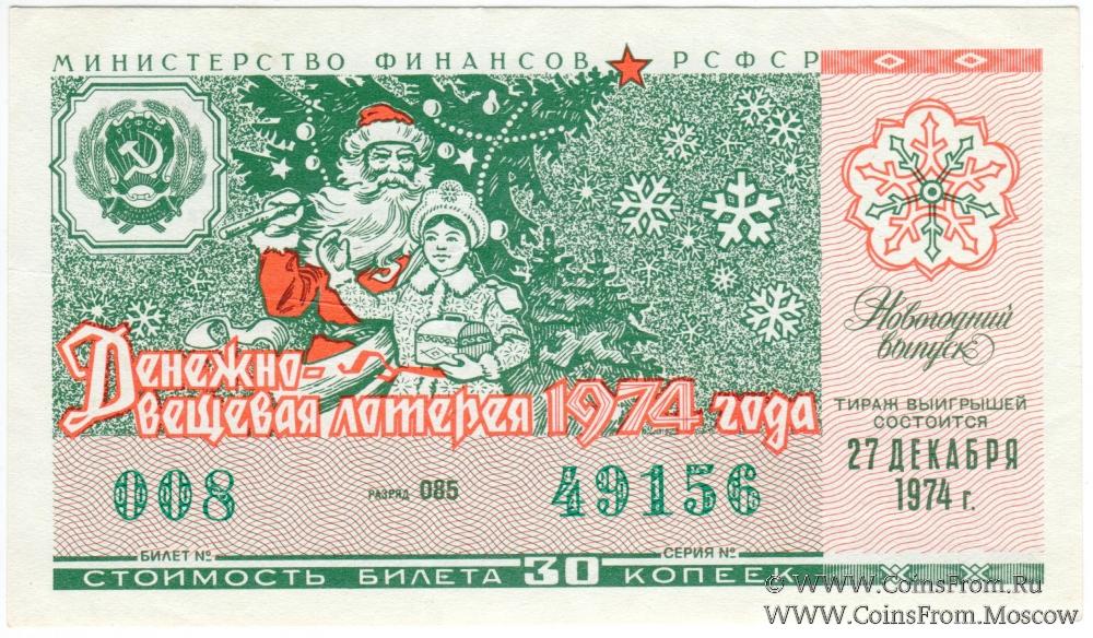 Билет. Новогодний выпуск. Денежно-вещевая лотерея 1974 г.