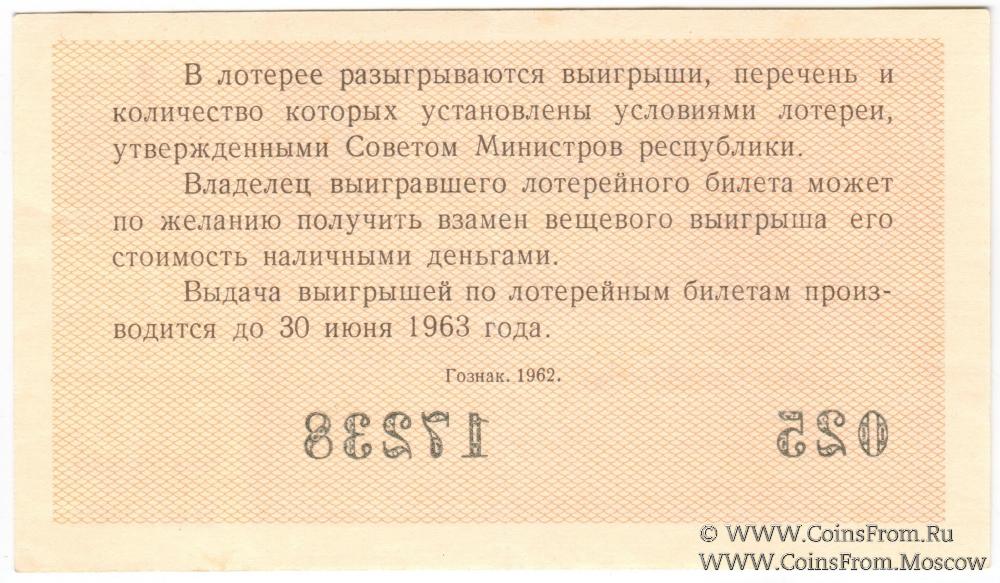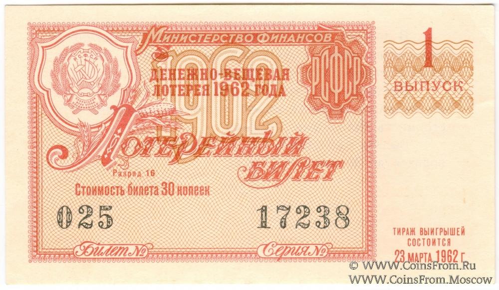 Лотерейный билет. Выпуск 1. Денежно-вещевая лотерея 1962 г.