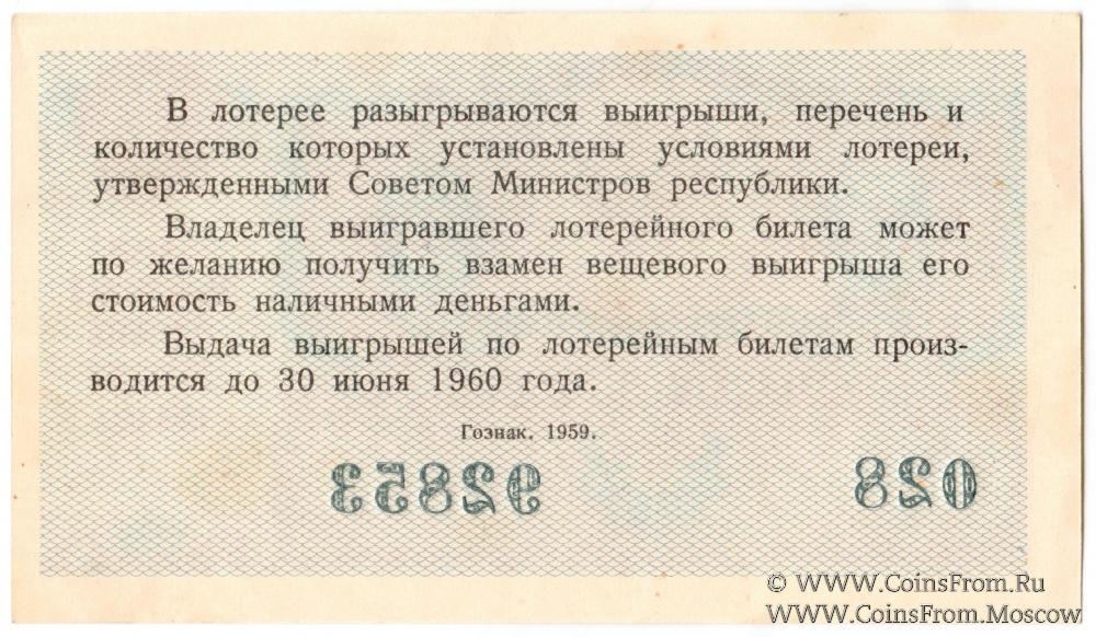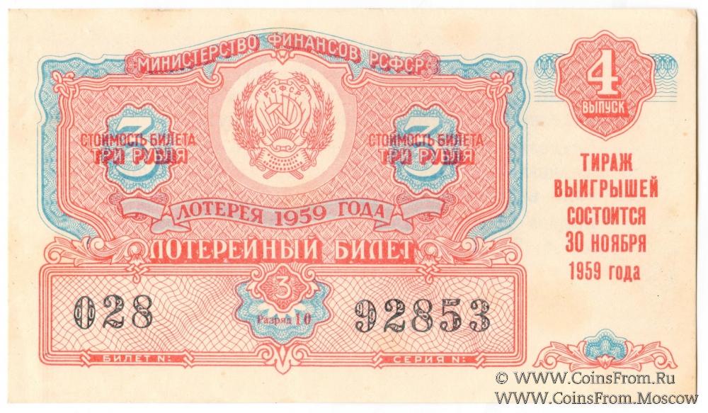 Лотерейный билет. Выпуск 4. Лотерея 1959 г.