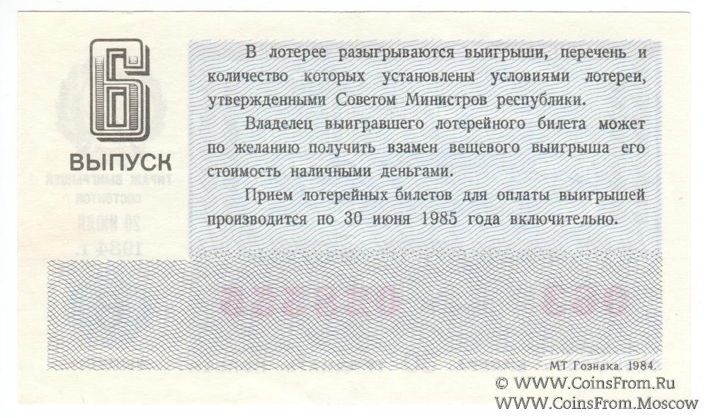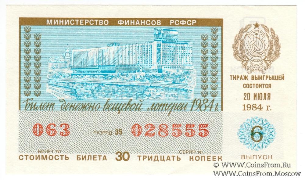 Билет. Выпуск 6. Денежно-вещевая лотерея 1984 г.
